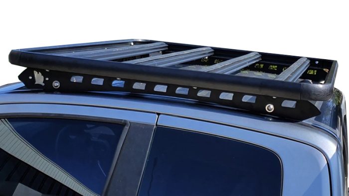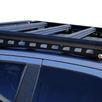 This roof rack platform assembly is installed with our signature Wedgetail Design Rail and secured with load tested rivet mounting system that attaches to the roof channel to provide an easy fit-and-remove system once installed