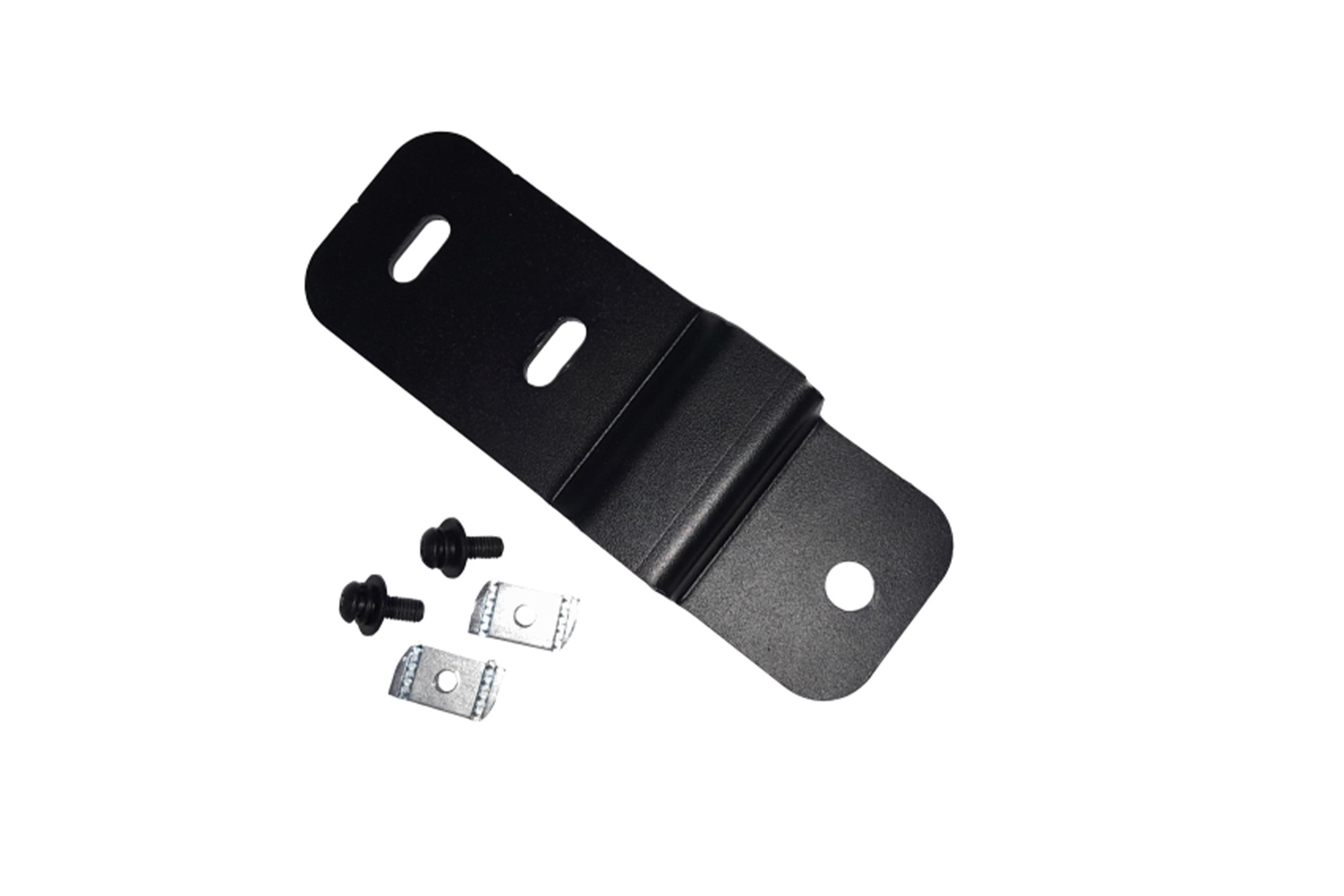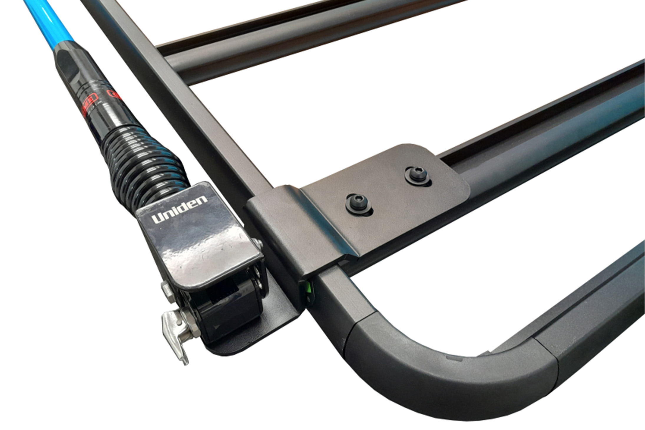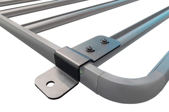 Aerials can also be mounted directly in the fixed upright position through the hole provided. The bracket is secured to the selected Wedgetail crossbar channel using M10 Strut nuts and bolts for a strong secure fitment. This bracket allows for the mount to sit off the side of the rack.